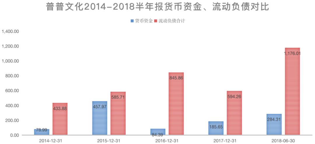 但即便如此,普普文化2018半年报账上的货币资金只有284万元,和压在头顶的一年内要偿还的1176万元的流动负债相比,实在是小巫见大巫。