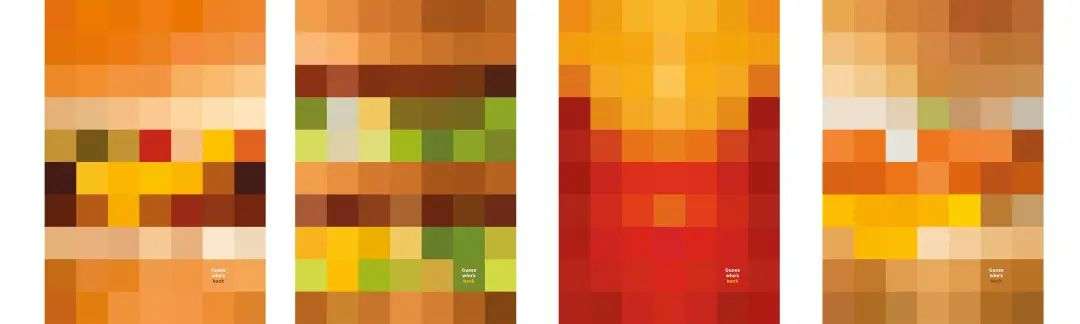 它们是麦当劳最近推出「No Logo」广告系列中的一幅,广告发布后引发了不少讨论,相比传统广告它确实令人耳目一新,甚至引发了新的竞赛——谁能以最快速度准确地认出马赛克都是那些麦当劳食品。