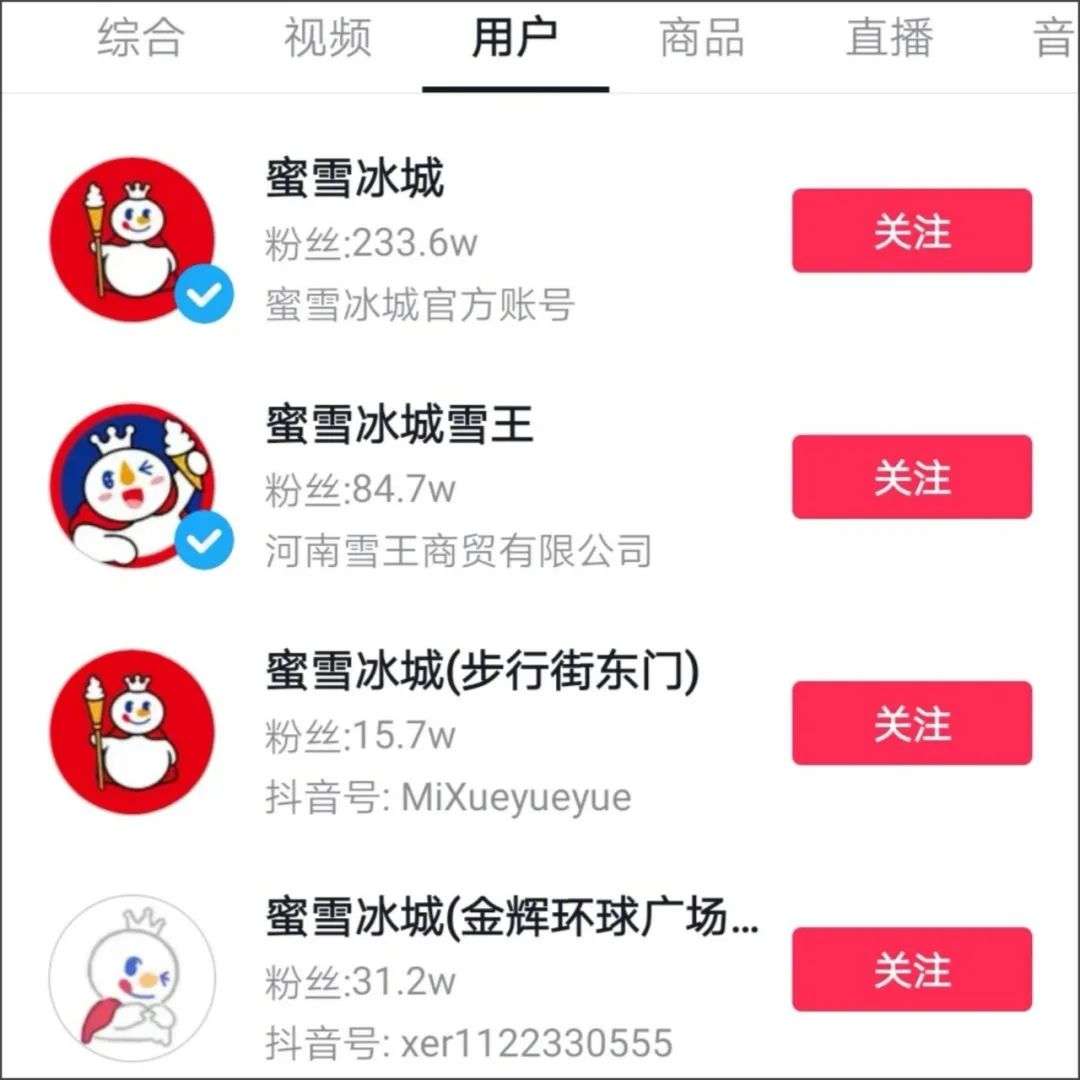 在抖音发力本地生活的当下,品牌也更容易实现线上线下的联动。以蜜雪冰城为例,于线上,品牌搭建了多个账号矩阵,聚合了各门店的线上流量,同时通过线下门店的素材持续“造梗”,以“蜜雪冰城社死”等多话题吸引用户“玩梗”,继而为线下导入更多流量,形成一个良好的循环。