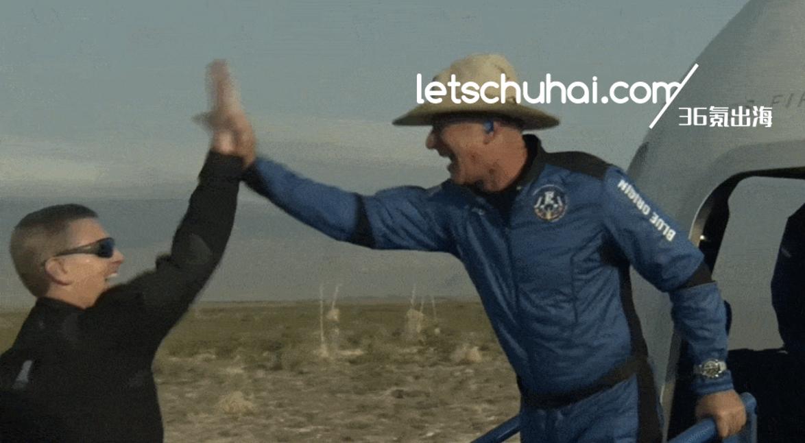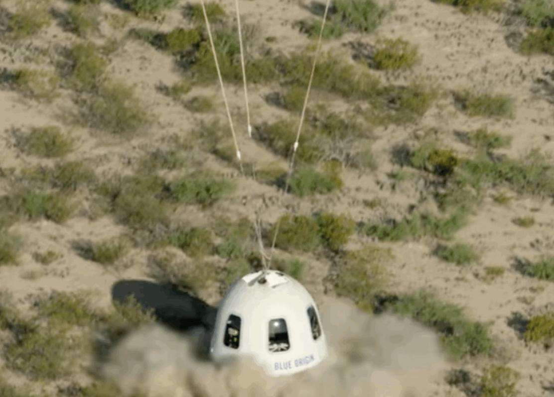 北京时间21点22分,贝索斯与3名队友顺利返回地面。落地后,坐在太空舱窗边的贝索斯仍旧兴奋的对着窗外的工作人员手舞足蹈。在打开舱门的那一刻,贝索斯第一个冲了出来,并和接应他的工作人员们击掌、拥抱。随后,他的弟弟马克·贝索斯(Mark Bezos)、唯一一位女队员沃利·芬克(Wally Funk)和18岁的奥利弗·戴曼(Oliver Daemen)也陆续走了出来。