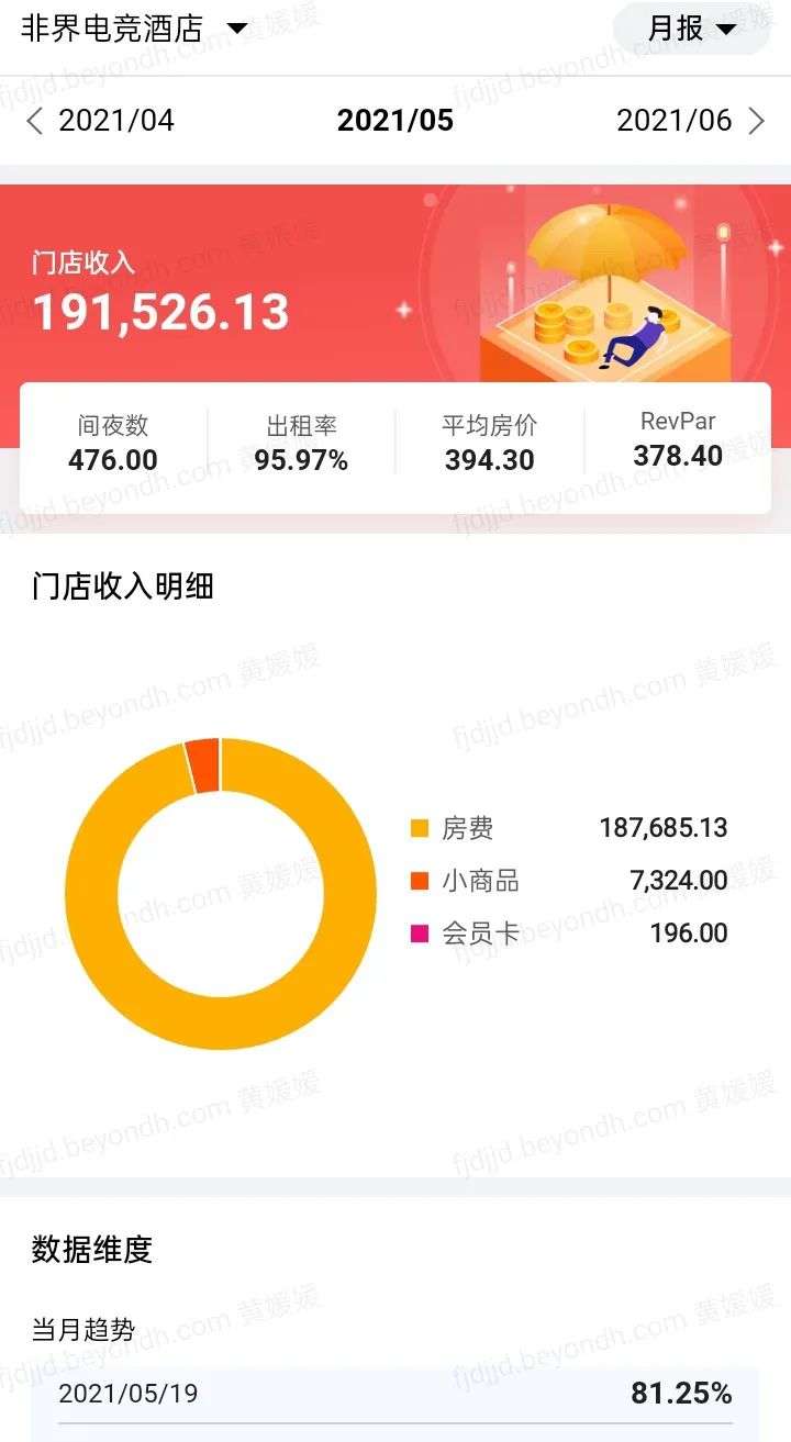 “太原非界电竞酒店投入280万,入住率通常在86%以上,如果加上钟点房,入住率最高可超110%,一年多时间过去已经回本一半。”方鸣介绍说。以今年5月为例,酒店单店平均房价394.30元/间,入住率95.97%,月营业额19.2万元。