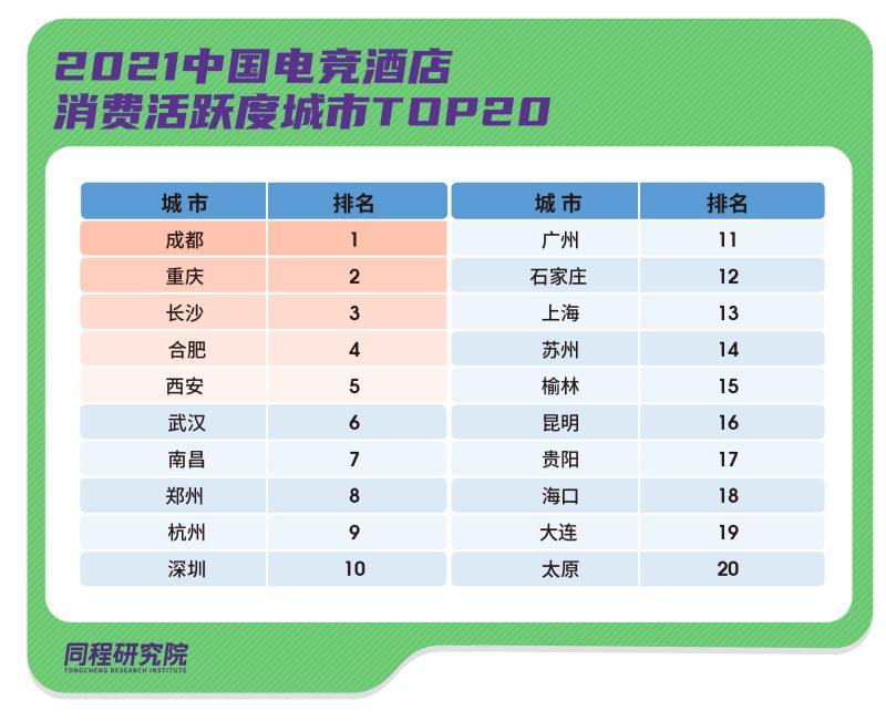 而从预订量上来看,电竞酒店热门城市与2020年相比没有太大变化。“新一线城市仍是行业发展的主力军,成都人特别喜欢电竞酒店,目前电竞酒店全国热门城市分别是:成都、重庆、长沙、合肥、西安等。”