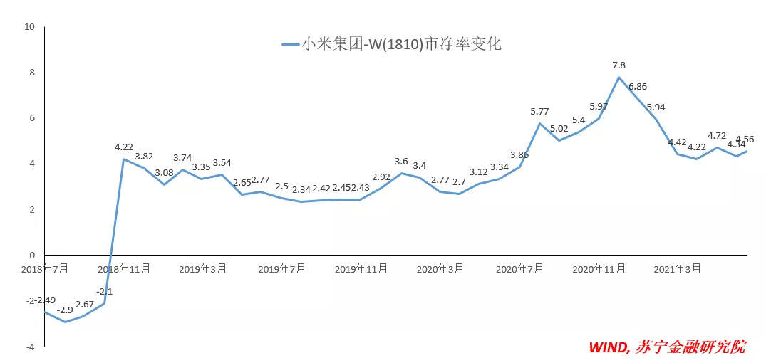 2020年下半年的高端机战略,让小米估值快速飙升。但2021年1月14日,美国政府“拉黑”包括小米在内的9家中国企业,这让小米的市净率从2020年11月的7.8倍下跌到2021年Q1的最低点4.22,市值跌去了800亿港元。如果小米汽车能够成功,并实现和小米手机、小米智能家居、小米互联网服务的紧密协同,有新能源和智能化两大概念支撑,将能够极大拉动小米的市净率和市值。当前蔚来市净率 17.53,特斯拉市净率27.23。