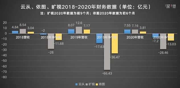 “AI四小龙”中除了尚未揭开神秘面纱的商汤之外,依图、旷视公布的招股书,也将巨额亏损的问题暴露在了闪光灯下。2018年到2020年上半年这两年半,依图亏损近61亿元,而旷视在2018年至2020前三季度已经合计亏损超122亿元。
