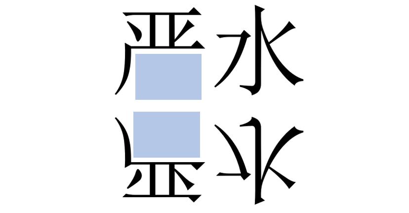 可能在大面积的宋体当中,这样的空白没有那么显眼,但是单独的两个字放在一起的时候,通过上下翻转,你可能已经发现了”严“字下方的空白略显突兀。