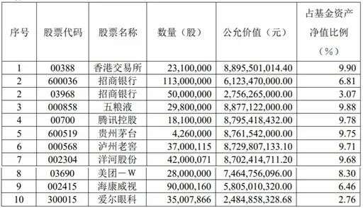2021年Q2易方达蓝筹精选持仓前十