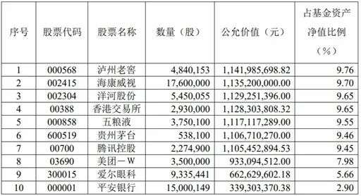 此外,该基金还在二季度增持了香港交易所、腾讯控股这两只港股标的,并减仓了海康威视和美团。目前,泸州老窖以9.76%的持仓占比成为易方达优质企业三年持有期混合的第一大重仓股。与此同时,华兰生物和锦欣生殖跌出前十大重仓股,爱尔眼科、平安银行成为新晋前十大重仓股。