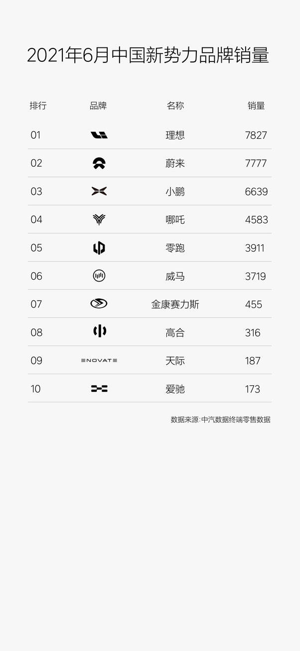 理想汽车的6月:改写“蔚小理”格局,登上造车新势力榜首