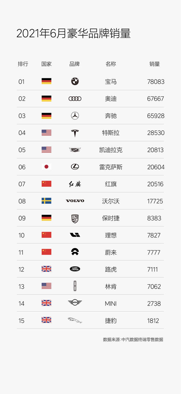 根据中汽数据终端零售数据披露的6月最新上险数据,在6月豪华品牌销量排名中,理想汽车首次进入豪华品牌前十名,超过蔚来、路虎、林肯等品牌,为中国新势力品牌最高排名。