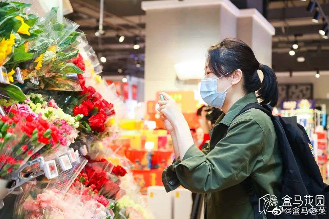 其实早在2019年,盒马就上线了白菜花坊,借今年5·20将白菜花坊升级为鲜花连锁品牌“盒马花园”。