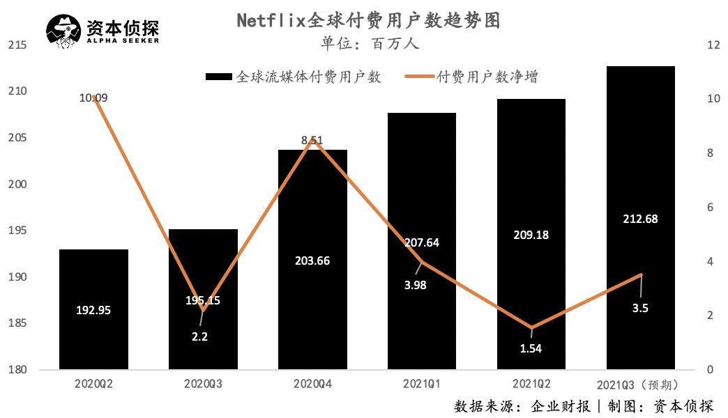 经过疫情期间的高速增长,Netflix全球用户数已经在去年底突破两亿,根据最新财报数据,截至2021年Q2,Netflix全球付费用户数达到2.09亿。