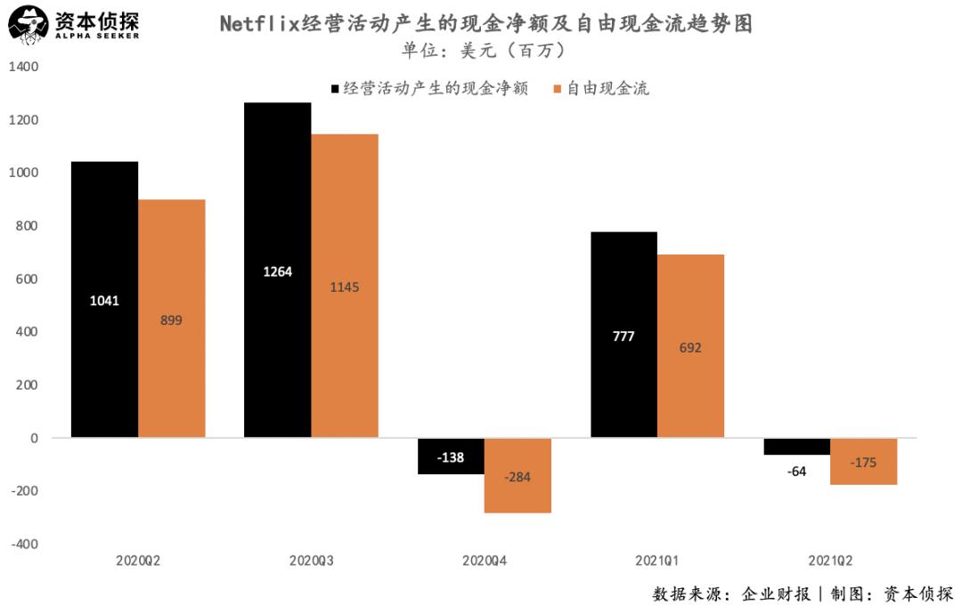 根据财报,截至Q2末,Netflix持有现金、现金等价物以及受限制现金总值为78亿美元,较上季度末流出6.3亿美元。