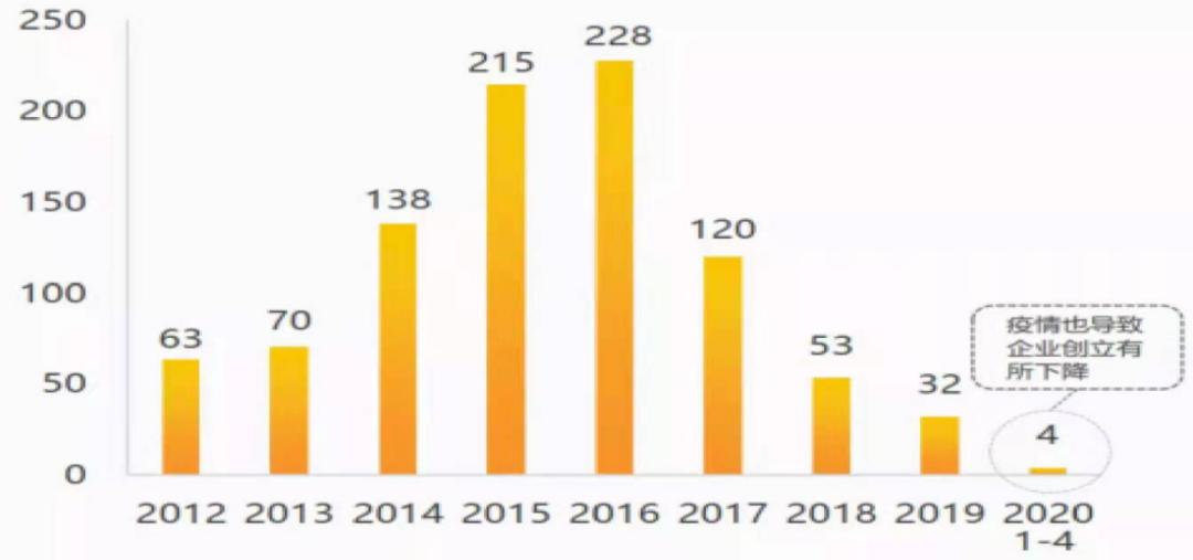 图:2012-2020年4月中国人工智能领域初创企业成立情况(来源:国盛证券、亿欧网)