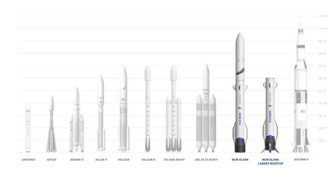 “新谢泼德号”的进阶版本“新格伦号”(New Glenn)轨道运载火箭,能够将人员和有效载荷运送到地球轨道和其他地方。这个巨无霸的可用面积是当前任何运载火箭的两倍,这意味着进入太空的有效载荷更大。新格伦号的首次发射项目将不会早于2022年第四季度。