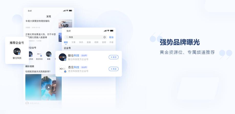 4、黄金资源位、搜索页面、多频道推荐,面向36氪覆盖的新经济群体精准倒流;入驻尊享版可享受36氪网站首页、36氪APP首页、36氪地方频道、36氪企业号频道推荐等权益。