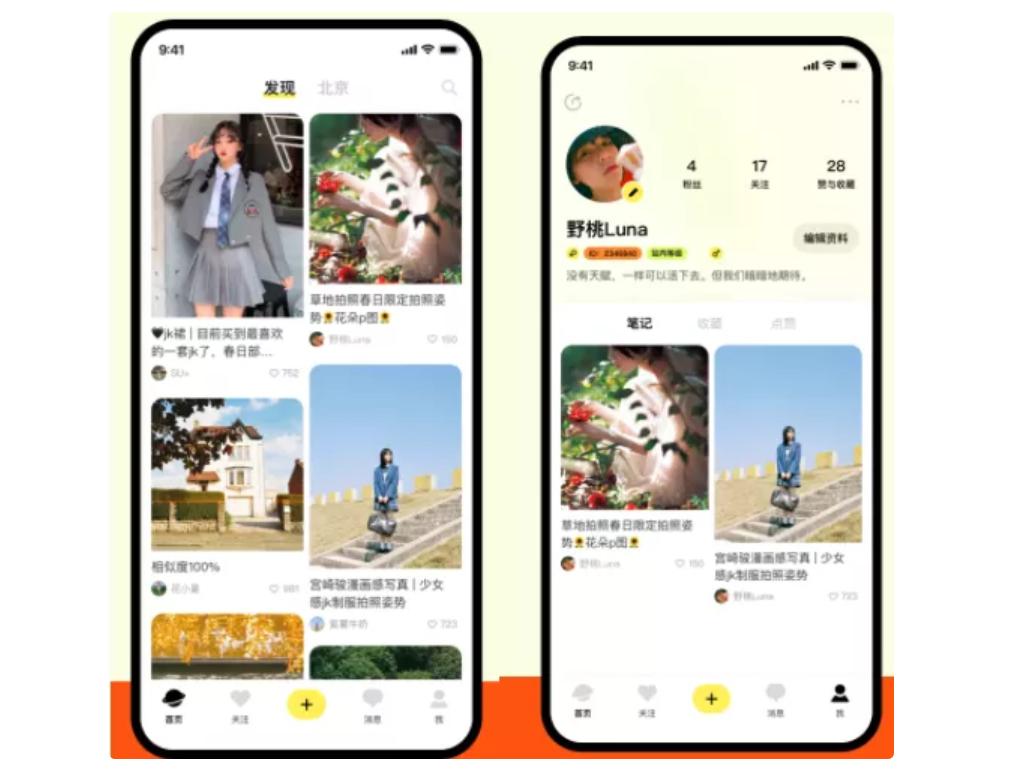 根据《松果财经》观察,在 UI 设计上,“树莓”APP和小红书很相似。首页都是推荐用户分享的日常笔记,以瀑布流的形式展示。而用户也可以点击底部的“+”号进行内容创作。