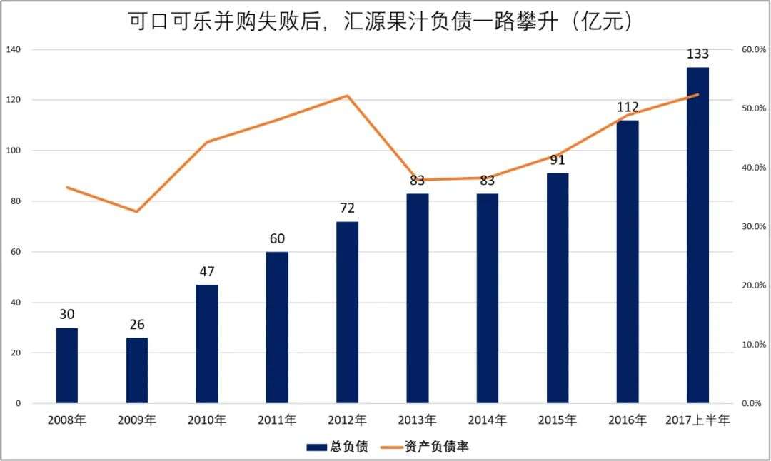 而讽刺的是,汇源果汁自2007年上市到2017年间,净利润总共才15.29亿元,十年赚的钱都不够还这一笔债。