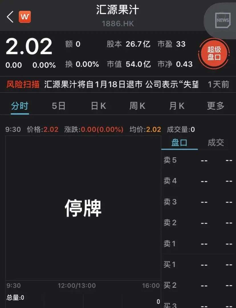2021年1月13日,港交所发布公告宣布,将在1月18日9点起,取消汇源果汁的上市地位。