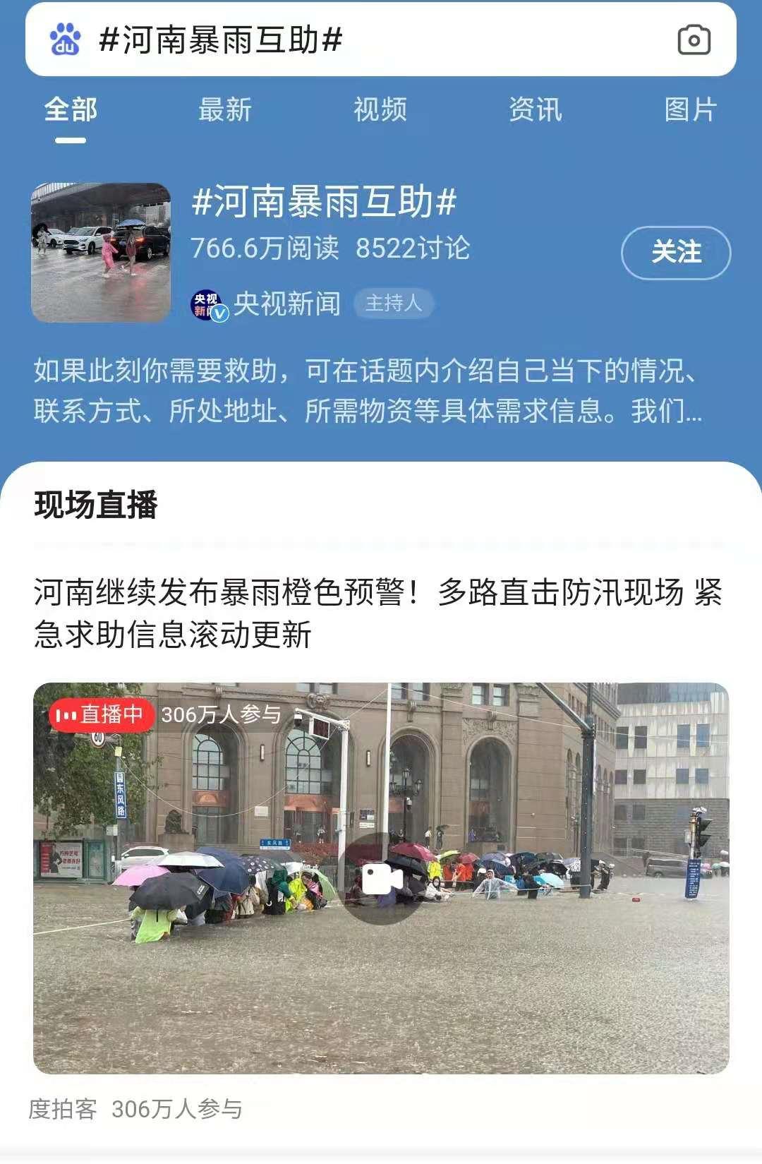 对于灾难中受困的人们来说,搭建暴雨互助、灾情防范等信息传播通道,尤为关键。