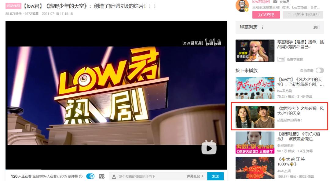 作为《风犬》独播平台的B站,在运营中显然有意对《风犬》与《燃野》进行了关联。初衷或许是双赢,但如今谁吸谁的血就不好说了。毕竟《燃野》的口碑已经出炉,网友大呼“快逃”。