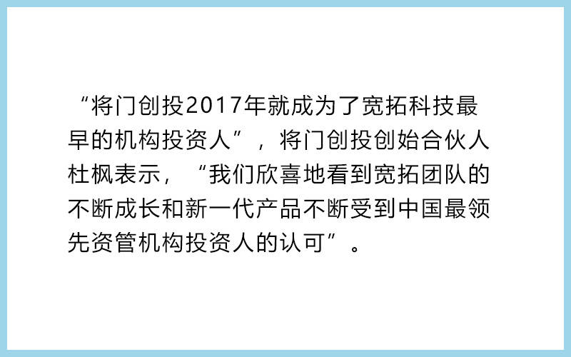 宽拓科技成立于2014年,总部在北京,设立了深圳、上海、杭州分公司,在美国湾区设有研发团队。公司主要是由金融业务专家和技术专家共同发起成立。宽拓科技创始人兼CEO陈明涌表示:“金融科技助力资本市场完成产业升级任重道远,宽拓很感激能与行业里优秀的机构和客户合作,感谢大家给予宽拓不断成长的机会,也很感激投资人的一路支持、让宽拓能坚持做难而正确的事。”