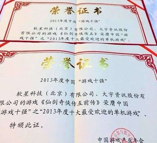 ▲《仙剑奇侠传五》官方网站晒出游戏获得的奖项。图片:畅游