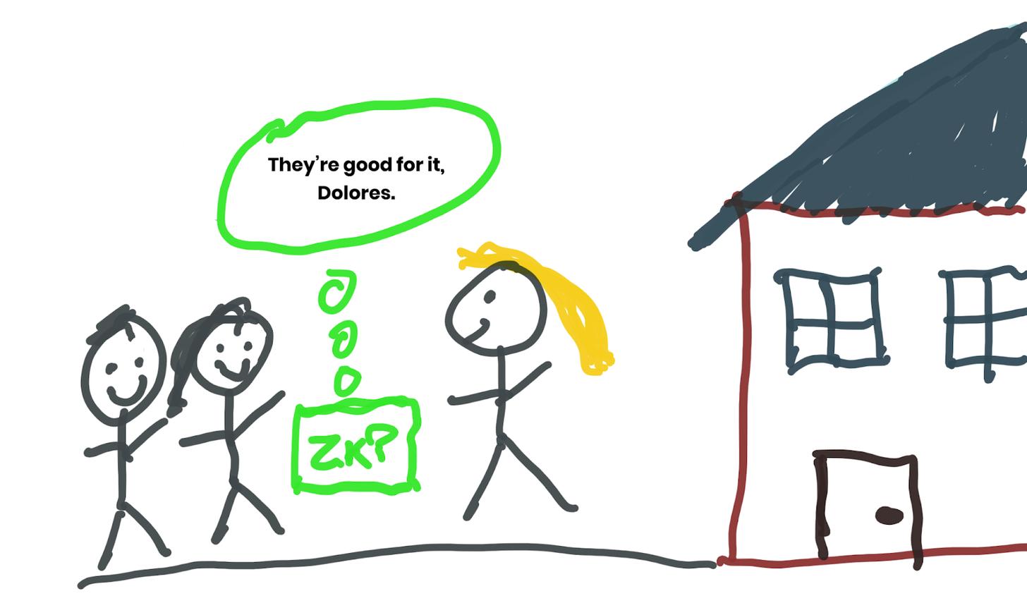 通过零知识系统,我们就不需要信任Dolores,她也不必信任我们。我们能够证明自己有良好的信用以及40 倍于月租的资金,又不需要分享我们的社会安全号码或任何基于这一假设的实际数据,也不需要跟银行或 CPA 等第三方合作,让对方替我们完成验证。我们不需要跟任何人共享我们的底层数据,甚至不需要跟ZKP本身共享。
