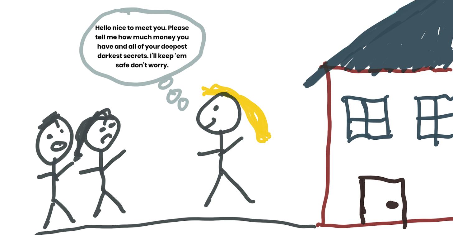 我是Packy。在新泽西隔离了这么长的时间之后,我和Puja正准备搬回布鲁克林。前几天,我们去看了一座公寓,并且第一次跟地产经纪Dolores见了面,我们大概谈了 10 分钟。房子我们很喜欢,所以我们告诉Dolores我们想租下来。她说:“很好!你只需填好这份 PDF ,然后把银行对帐单和收入证明还有你们两个的社会安全号码发邮件给我,等我帮你们做完信用检查就行。”