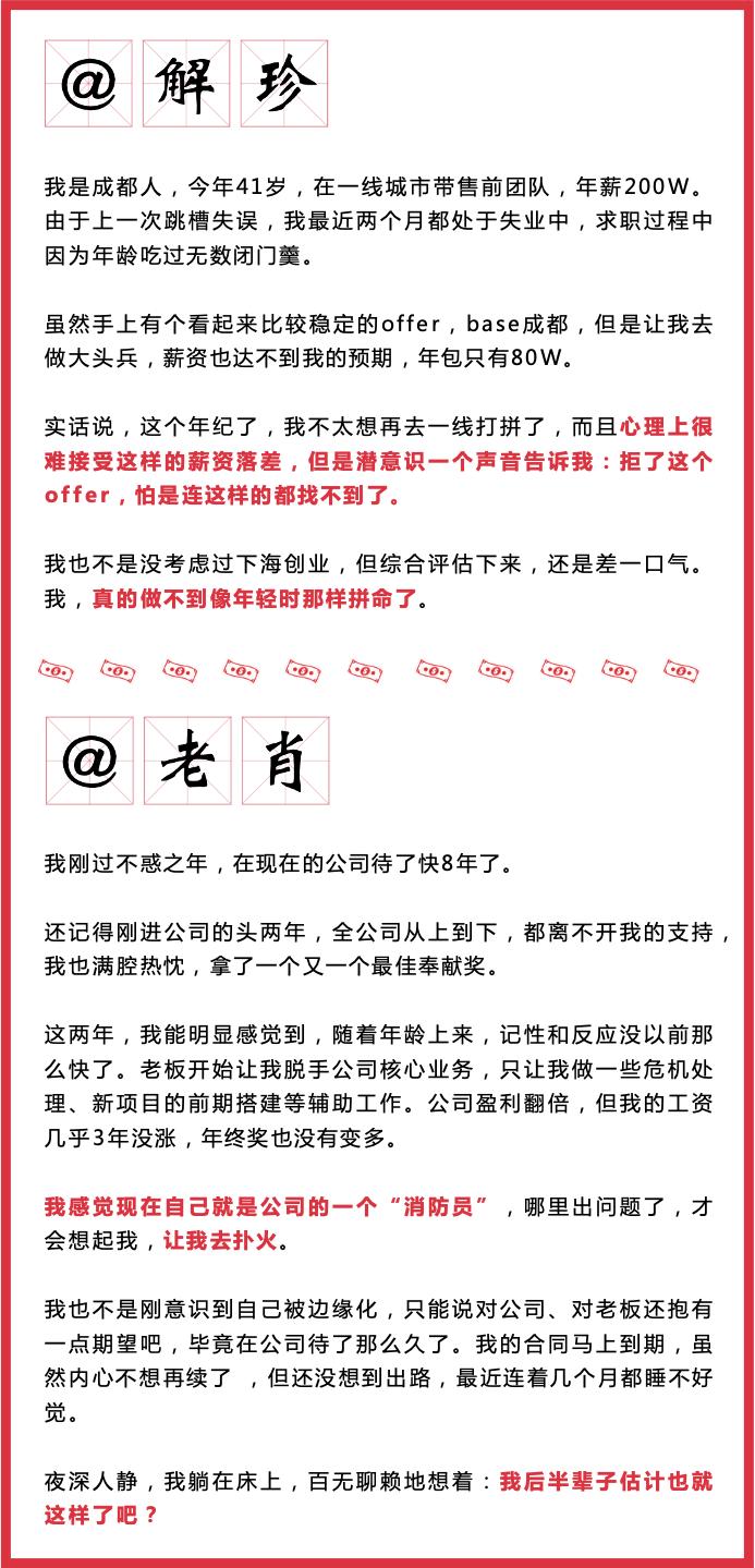 职场中年人太难了。一方面要忍受来自年轻人的疯狂内卷,整日陷在能力体力落伍的焦虑和被公司抛弃的恐惧中。想跳槽,但是因年龄问题,常常无人接盘。每天起床照镜子,都会面临来自镜子里那个人的灵魂拷问——“35岁了,我职业上升的曲线,就到此为止了吗?”
