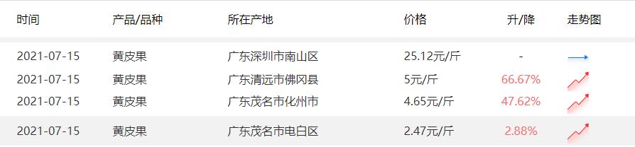 然而有趣的是,黄皮上涨价格远不及油柑。惠农网上,部分地区黄皮价格仍呈平稳趋势,甚至在小部分地区价格也仅仅只有2.47元/斤。