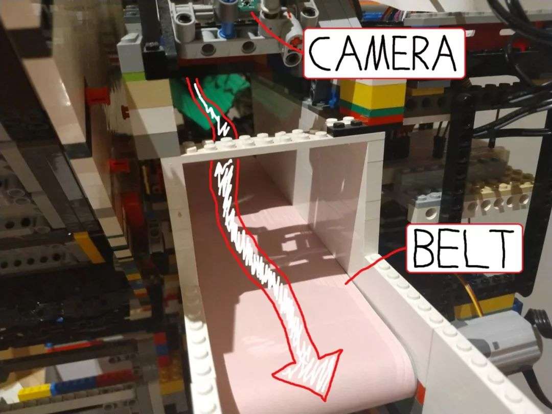 相机会拍摄沿着传送带输送的乐高零件,然后将照片上传到运行着AI算法的服务器,从数千个可能的乐高元素中识别零件。