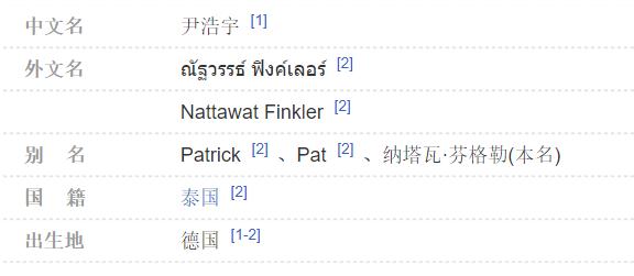 来中国参加选秀的泰德混血选手尹浩宇,泰文原名是:ณัฐวรรธ์ ฟิงค์เลอร์;德语名则是:Nattawat Finkler。