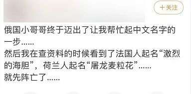 虽然外国人起中文名确实一不小心就会翻车,引发一连群嘲。