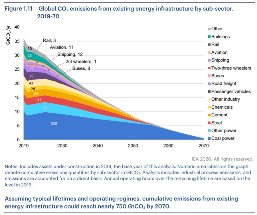 根据IEA的数据显示,全球碳排放量中,如果根据当前的技术来看,到2070年将增加近7500亿吨二氧化碳排放。其中占比最大的是煤炭发电,占比为55%,其次是钢铁、水泥和其它重工业,占比为26%,而交通运输业的占比也比较大,达到了11%。