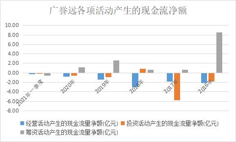 相比之下,筹资活动产生的现金流净额仅仅在今年一季度为负。这也意味着,广誉远在过去几年更多是过着入不敷出的日子,靠筹资度日,而非日常经营与投资收入。