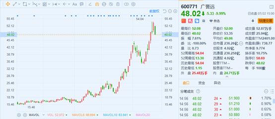 过去三年,广誉远的股价一直处于低迷期。但从5月中旬起,广誉远的股价就开始量价齐飞,期间累计最大涨幅超过了2倍。