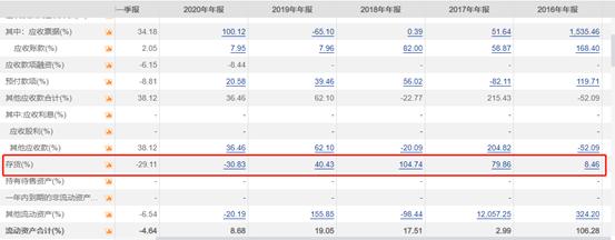 预收款方面,2016年至2020年,广誉远预收款分别为0.45亿元、0,23亿元、0.32亿元0.29亿元和0.05亿元,远低于应收账款。