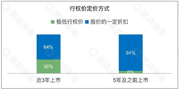 同时,即使对于采用期权的公司,近3年实现IPO的TMT公司当中,36%的公司选择采用极低行权价,而5年前及更早实现IPO的TMT公司,这一比例仅为6%。