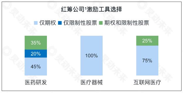 对于医疗健康的红筹公司,激励工具使用同样遵循「限制性股票逐步替代期权」的规律。上市前单一授予常规定价的期权为最主流的方式