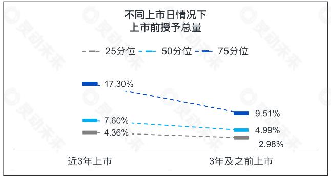 对于上市后的公司而言,每年的授予量相对比较稳定,近3年实现IPO的公司与早期完成IPO的公司并没有显著差异。