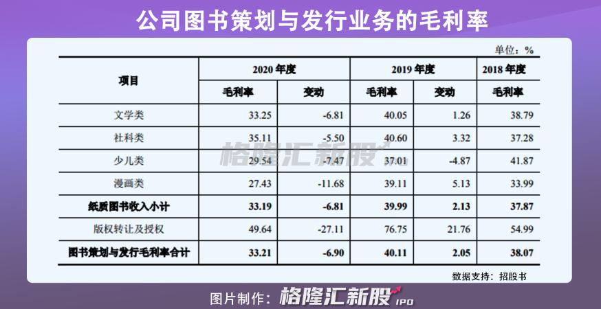 不过,报告期内,磨铁集团图书策划与发行业务的毛利率分别为38.07%、40.11%、33.21%,低于同行业可比公司的平均值,主要受图书销售实洋、商业折让、纸张成本、版权成本等因素所致。