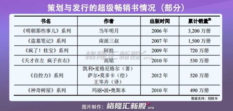 磨铁文化的主要优势产品是文学类和社科类图书,报告期内,占图书策划与发行收入的比例均超八成。截至2020年末,排名前三的畅销书——《明朝那些事儿》系列、《盗墓笔记》系列、《疯了!桂宝》系列的累计销量分别为3200万册、1500万册、720万册,为其业务增长带来一定的稳定保证。