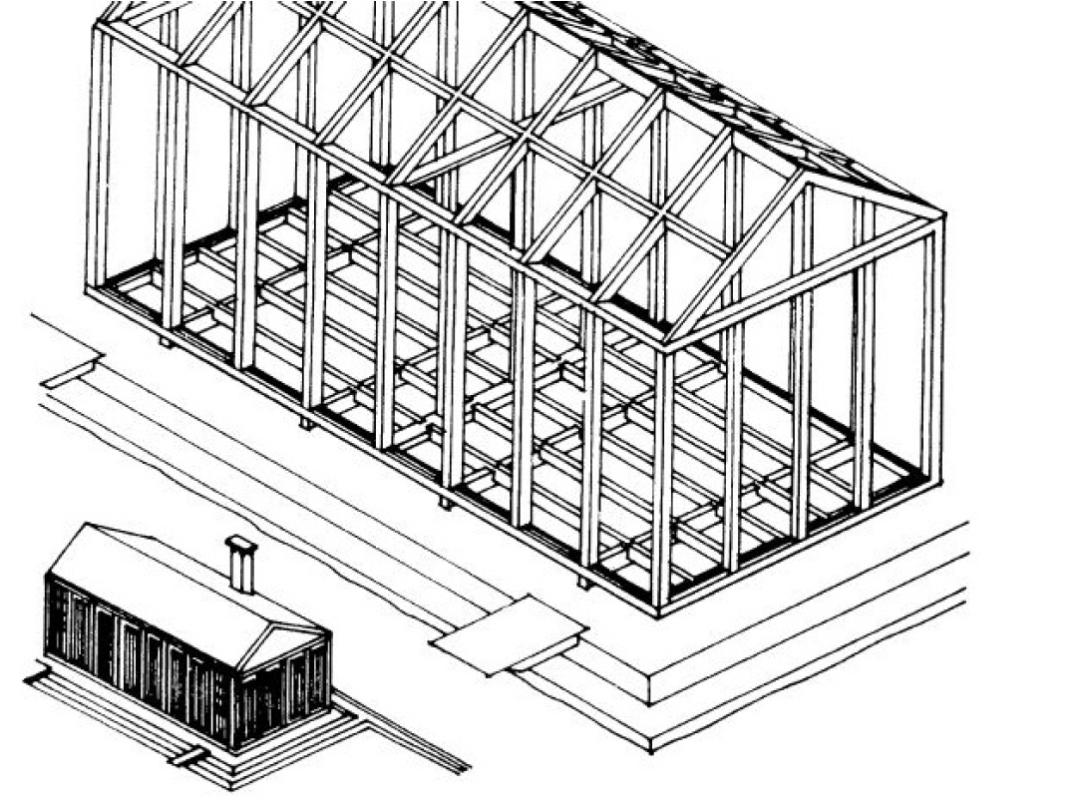1830年,为实现海外殖民地定居点的快速建设,英国木匠曼宁(John Manning)借助造船业基础,发明了在英国制造并由轮船运往世界各地建造简易的木框架房屋(Manning Portable Cottage)。
