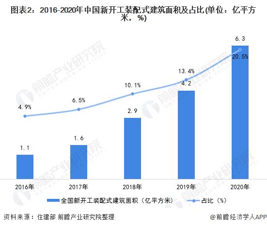 2016-2020年我国新建装配式建筑面积逐年增长,新开工装配式建筑面积占新建建筑面积的比例也不断提高,2020年,全国新开工装配式建筑面积达6.3亿平方米,占比20.5%。数据来源:前瞻产业研究院
