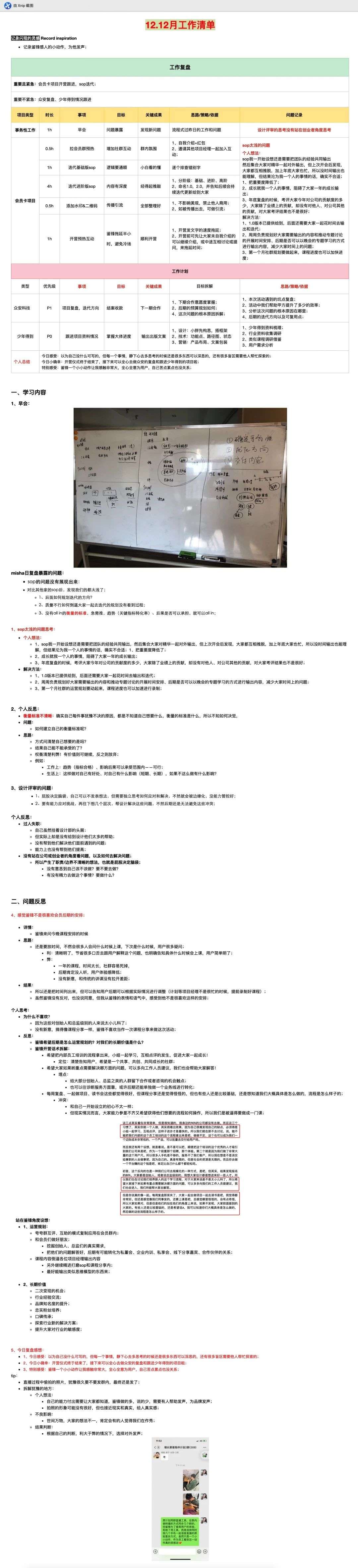 当晚回看复盘时、你可以站在全局维度去发现自己哪里还可以做得更好、梳理出来影响项目成败的关键节点、然后实时迭代下一步的行动计划;不断查漏补缺、形成正向反馈,最后把积累的正确经验总结出一套可复用的SOP,降低团队其他人踩坑概率。