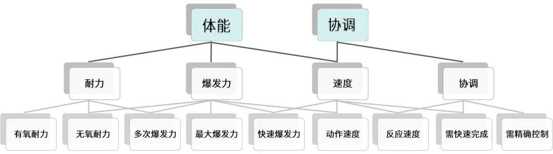 如果对决定成绩的运动能力简单分类,可以分为体能和协调两类。虽然严格来讲,所有项目都结合了这两类能力,但部分运动更注重体能,比如长跑和举重;一部分对协调要求更高,比如射击和高尔夫球;还有一些项目对两类能力都有很高要求,比如足球和篮球。