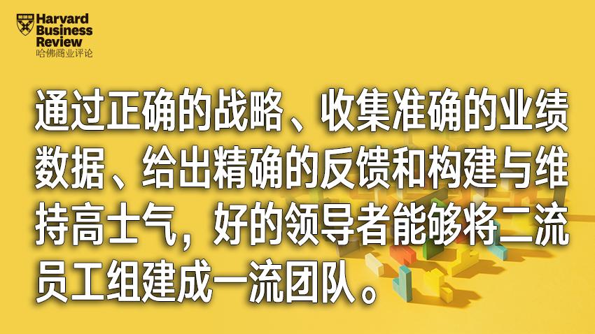 简而言之,通过正确的战略、收集准确的业绩数据、给出精确的反馈和构建与维持高士气,好的领导者能够将二流员工组建成一流团队。拥有一流团队的领导者很少有能够做到以上几点,因此能够这么做的领导者无疑很有希望能够成功。