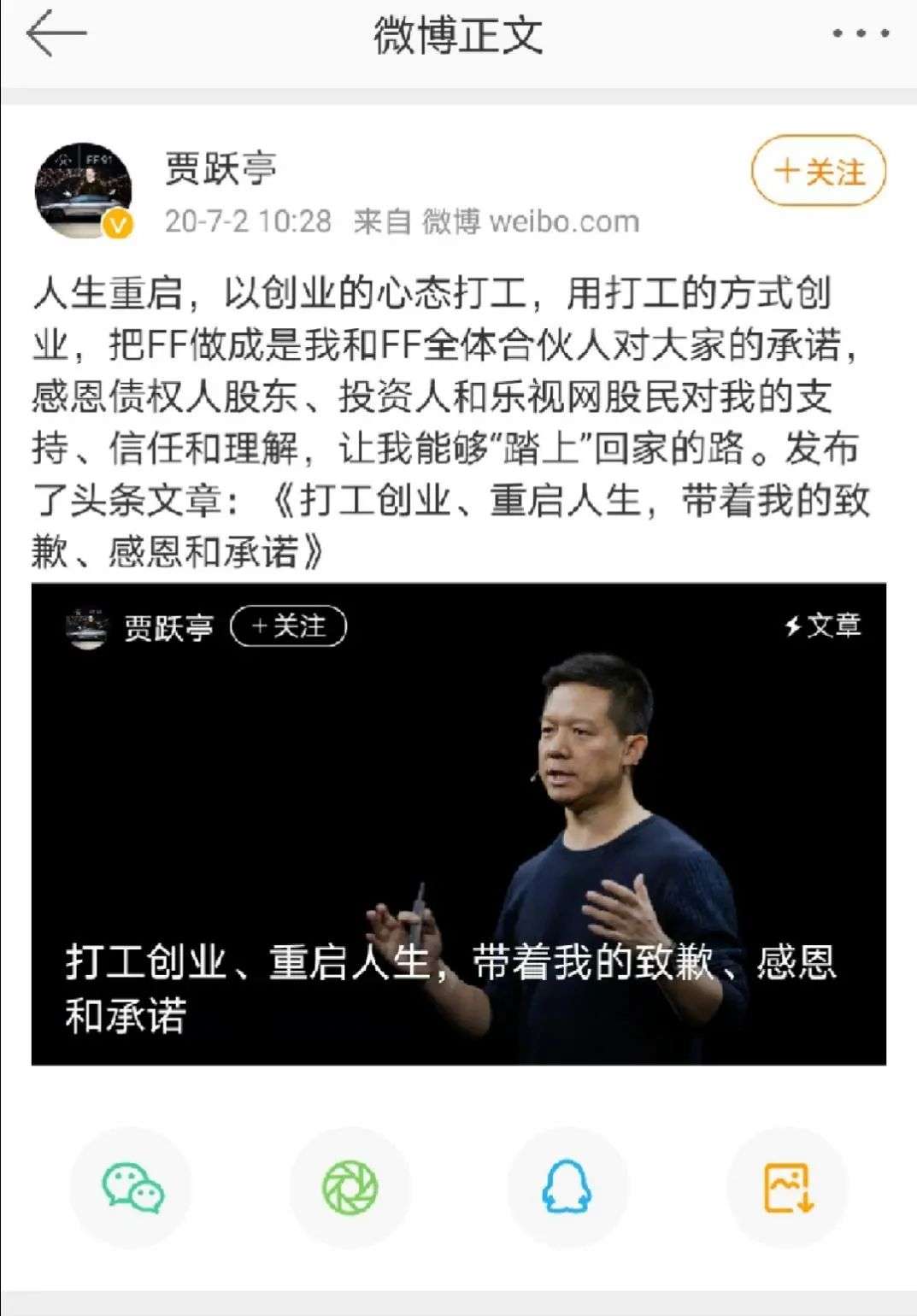 换句话说,FF的创始人贾跃亭,其实已经和FF没什么关系了。