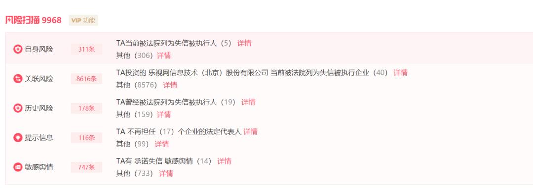 贾跃亭的风险信息