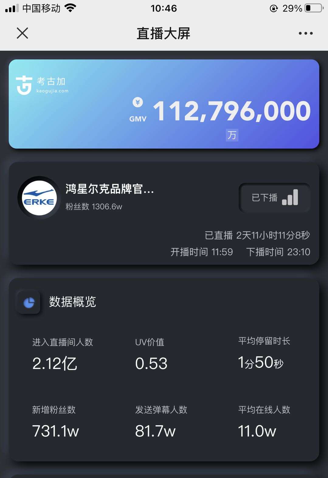 2.直播间一晚销售额突破7000万